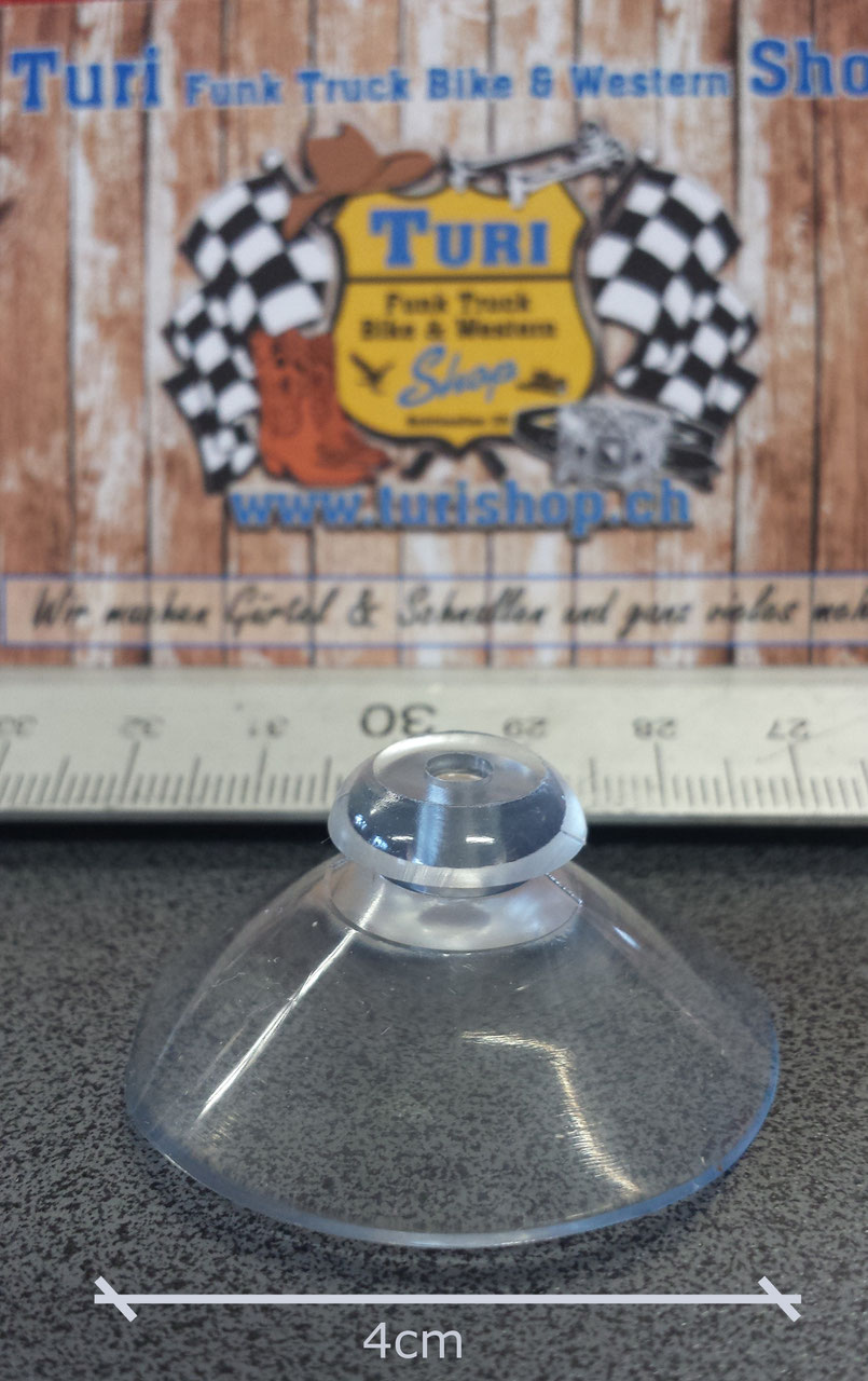 4cm Saugnapf mit M4 Gewinde (10mm lang) und weisser Kunststoff-Mutter